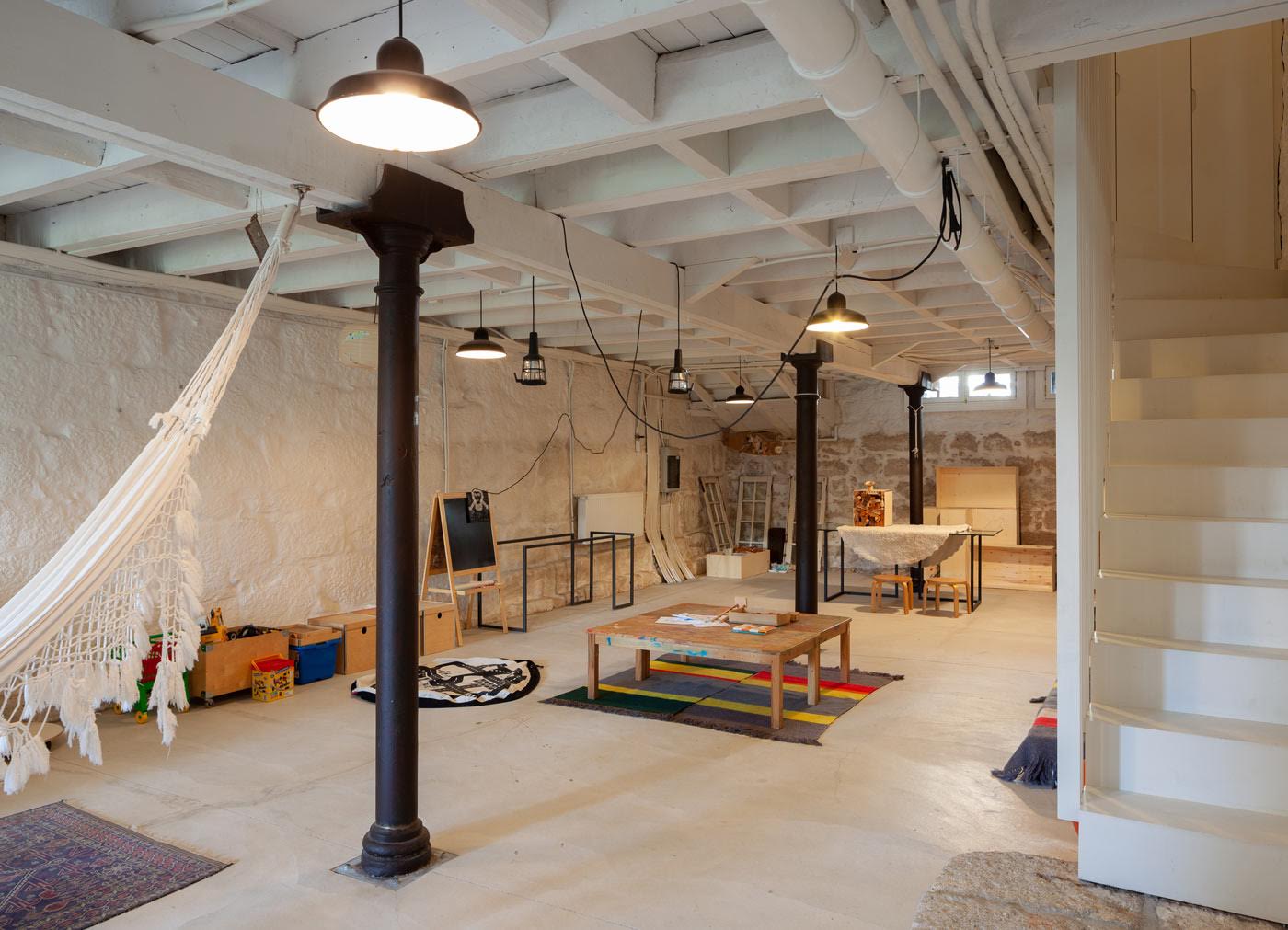 O piso -1, em pior estado de conservação, e com uma relação directa com o jardim que se pretendia potenciar, foi alvo de uma maior transformação em termos de elementos construtivos e de organização espacial.