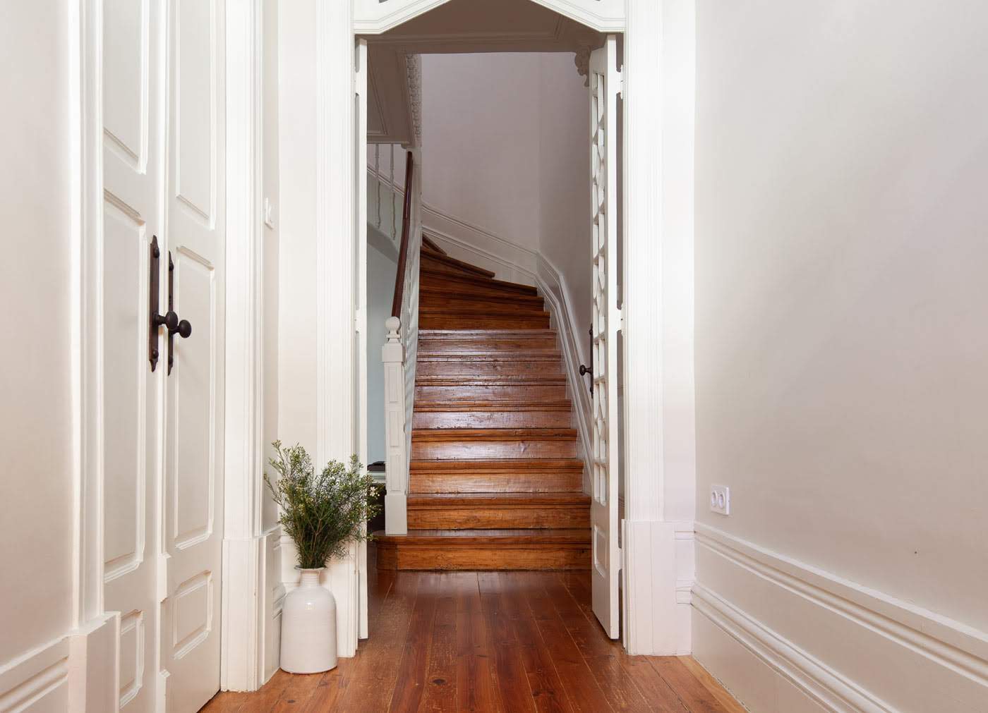 Procurou-se reabilitar os elementos construtivos existentes e intervir pontualmente nas zonas mais degradas e/ou descaracterizadas, utilizando soluções baseadas em materiais e técnicas tradicionais, minimizando o impacto no edifício, preservando e valorizando as suas características originais e respondendo ao pretendido pelos proprietários.
